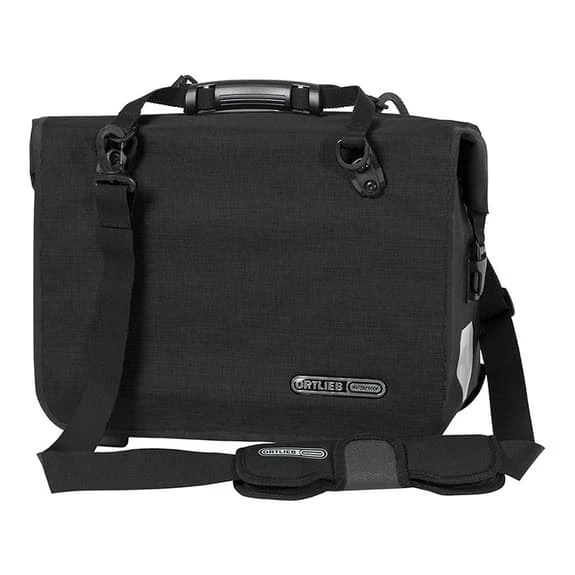Tracolla Ortlieb Office-Bag 21L e con adattatore Quick-Lock3.1 può essere fissata sulla destra o sulla sinistra del portapacchi e può essere agganciata o rilasciata molto velocemente. Grazie alla tracolla imbottita smontabile, puoi portarla con te quando lasci la bici parcheggiata ed entri in ufficio. Presenta due inserti riflettenti realizzati in materiale Scotchlite da 3M’ che garantiscono una buona visibilità in condizioni di luce sfavorevoli e al buio. Presenta un sistema di chiusura a rotolo e il suo interno è ben strutturato come l’esterno. Offre uno scomparto imbottito per notebook fino a 15.4 pollici, spazio sufficiente per due cartelle DIN A4, penne, cellulare e altro ancora. Questa tracolla è realizzata in poliestere rivestito con PU (poliuretano) e senza PVC (cloruro di polivinile), ottenendo un materiale robusto e impermeabile in tela che offre una grande qualità, una lunghissima durata e rispetta l’ambiente.