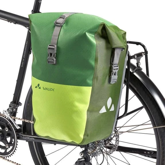 La tracolla Vaude Aqua Color Single è impermeabile e dallo stile discreto, realizzata in robusta tela senza PVC con una produzione neutra dal punto di vista climatico presso la sede tedesca di Vaude vicino al Lago di Costanza. Con il suo roll lock può essere regolata individualmente alla dimensione desiderata ed è assolutamente a tenuta d’aria. Una semplice tasca interna fornisce una chiara visione d’insieme. La borsa da bicicletta può essere fissata alla cerniera posteriore con il sistema QMR 2.0 e la sua stabile piastra posteriore a destra o a sinistra, è facilmente regolabile ed è molto facile da rimuovere quando si vuole portarla con sé. Può essere bloccata direttamente al gancio QMR con un lucchetto per bicicletta. È dotata di elementi riflettenti.