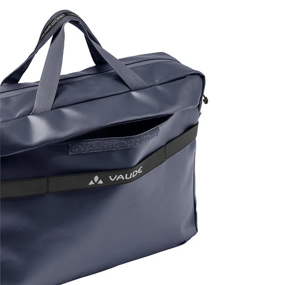 La borsa Vaude Mineo Commuter, con una capacità di 17 litri, è una valigia e una borsa in un unico prodotto. Può essere agganciata e sganciata dal portapacchi della bicicletta in un solo passaggio, utilizzando un binario Plug and Ride. È ideale per gli spostamenti in bicicletta ed è comoda da trasportare anche a piedi, riponendo il binario nell’apposito scomparto laterale. Dispone inoltre di sofisticati scomparti. Il telefono e altri piccoli oggetti possono essere riposti al sicuro nello scomparto posteriore con cerniera, giornali, blocchi per appunti e snack possono essere riposti rapidamente nello scomparto anteriore e l’ampio scomparto principale può ospitare facilmente un computer portatile da 15,6 pollici, documenti e persino un’intera cartella. Una tasca interna per bottiglie/borraccia protegge le tue bevande. Una catena multifunzionale stampata con elementi riflettenti può essere utilizzata per aggiungere altre attrezzature alla borsa o per fissarla a una borsa da viaggio. Il robusto materiale, certificato bluesign, è privo di PVC, repellente allo sporco e impermeabile. In qualità di membro dell’organizzazione indipendente Fair Wear con status di leadership, Vaude si impegna a garantire condizioni di lavoro e salari equi nella produzione dei suoi prodotti. L’etichetta Vaude Green Shape identifica che i prodotti sono funzionali ed ecologici e sono realizzati con materiali sostenibili. Inoltre, questo prodotto è neutrale dal punto di vista climatico, poiché tutte le emissioni derivanti dai materiali, dalla produzione e dalla spedizione sono state sistematicamente analizzate da Vaude e ridotte.