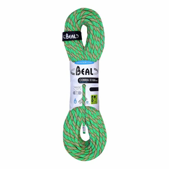 La corda doppia Beal Cobra II Golden Dry 8.6 mm x 60 m è la corda classica per i terreni d’avventura, progettata per essere un ottimo compromesso tra resistenza e leggerezza. È perfetta per l’arrampicata su grandi pareti, l’arrampicata in parete e l’alpinismo. È caratterizzata da una bassa resistenza agli urti e a un elevato numero di cadute. Inoltre, la corda non si gonfia e rimane flessibile più a lungo. Vale la pena di notare che permette la fuga in corda doppia anche se la guaina viene tagliata grazie alla tecnologia UNICORE.