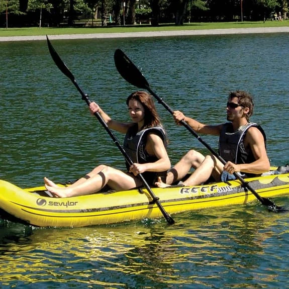 Kayak Sevylor Sit-On-Top REEF 300 è gonfiabile e ti permetterà di scoprire il mondo marino in modo semplice e divertente. Si distingue per la sua versatilità ed è ideale per altre attività come lo snorkeling e le lunghe escursioni. Presenta diversi punti di ancoraggio fissare il carico in modo sicuro.