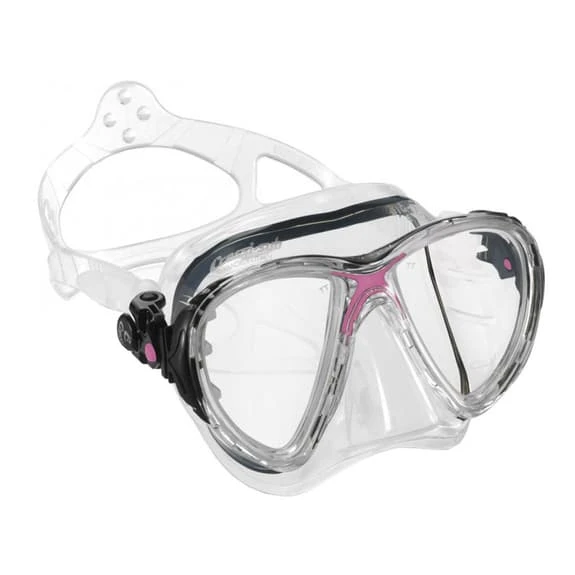 La maschera da sub Cressi Evo Big Eyes con lenti trasparenti ha una struttura della montatura eccezionalmente piccola che consente un avvicinamento alle lenti senza problemi di contatto con il telaio. Le lenti inclinate ed estese sopra gli zigomi aumentano la visibilità inferiore di oltre il 30% rispetto a una maschera tradizionale. Il labbro esterno del facciale a contatto con il viso e l’area che copre il naso hanno uno spessore decrescente che migliora la vestibilità e mantiene il comfort durante le lunghe ore di utilizzo.
