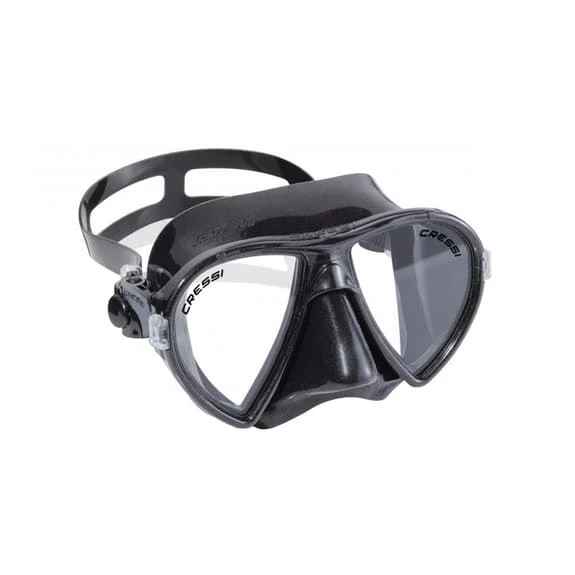 La maschera da sub Cressi Ocean con lenti trasparenti ha sistema di assemblaggio avanzato che consente di ottenere uno spessore minimo della montatura (6 mm) e di alleggerire significativamente il peso della maschera a soli 175 g con il cinturino incluso. Non è più necessario un cerchio per tenere in posizione le lenti, che aumentava lo spessore della maschera, ma la montatura principale stessa circonda e preme il facciale sulle lenti per assemblare la maschera. Le lenti inclinate estese sopra gli zigomi aumentano la visibilità inferiore di oltre il 30% rispetto a una maschera tradizionale, mentre la visibilità superiore e laterale è aumentata fino al limite dello spessore della montatura stessa. Inoltre, la maschera da sub Ocean è dotata di fibbie completamente girevoli che ruotano in tutte le direzioni e sono fissate alla montatura con un elastomero flessibile e infrangibile. La tensione della cinghia agisce direttamente sul telaio, mantenendo la stabilità della maschera e avvicinando il più possibile il vetro agli occhi.