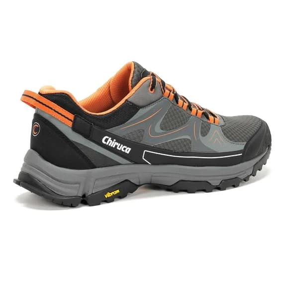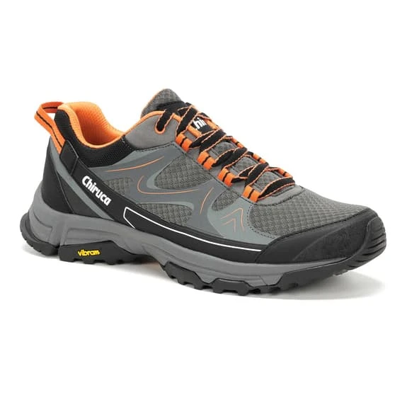 Le scarpe Chiruca Alboran, realizzate in materiale tessile con dettagli sintetici, hanno un’intersuola in phylon espanso e una suola in gomma Vibram Exmoor.