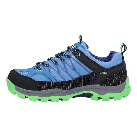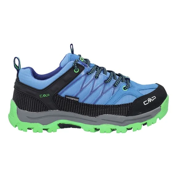 Scarpe CMP Kids Rigel Low WP da bambino con una nuova versione della membrana impermeabile Clima Protect più resistente e traspirante. Sostegno di TPU nel tallone che garantisce stabilità e sostegno durante l’appoggio. Fascia di protezione perimetrale di fibra più resistente. Sistema di chiusura Quick-Lace.