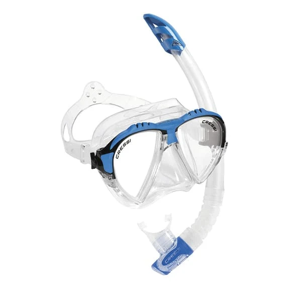 Il set Cressi Matrix + Gamma è dotato della maschera più tecnica di Cressi che offre una visibilità illimitata della zona inferiore e ottimizza l’angolazione in tutte le direzioni grazie alla montatura di spessore minimo. Inoltre, è dotato di un ponte centrale rinforzato per evitare la perdita di planarità delle lenti dovuta all’eccessiva tensione della fibbia. Le fibbie sono integrate nella montatura per una resistenza ottimale. Include anche un snorkel di alta gamma con un profilo progressivo completamente arrotondato. Lo snorkel ha un deflettore superiore per ridurre le infiltrazioni d’acqua dovute alle onde che non compromette il flusso di entrata dell’aria.