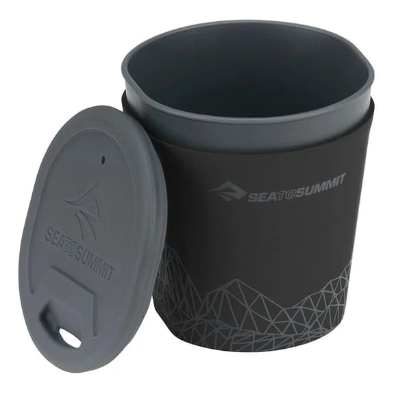 Set da cucina Sea to Summit che include 4 marmitte e 4 bicchieri con tappo e custodia isolante.
