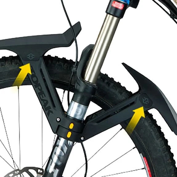 Il set di parafanghi Topeak DeFender XC1/XC11 è progettato apposta per le biciclette con ruote da 29″. È realizzato in plastica resistente e flessibile che offre una grande leggerezza e resistenza agli impatti. Il parafanghi anteriore si monta sulla forcella della bicicletta ed è formato da due parti per ottenere la massima protezione, mentre quello posteriore si fissa al reggisella.